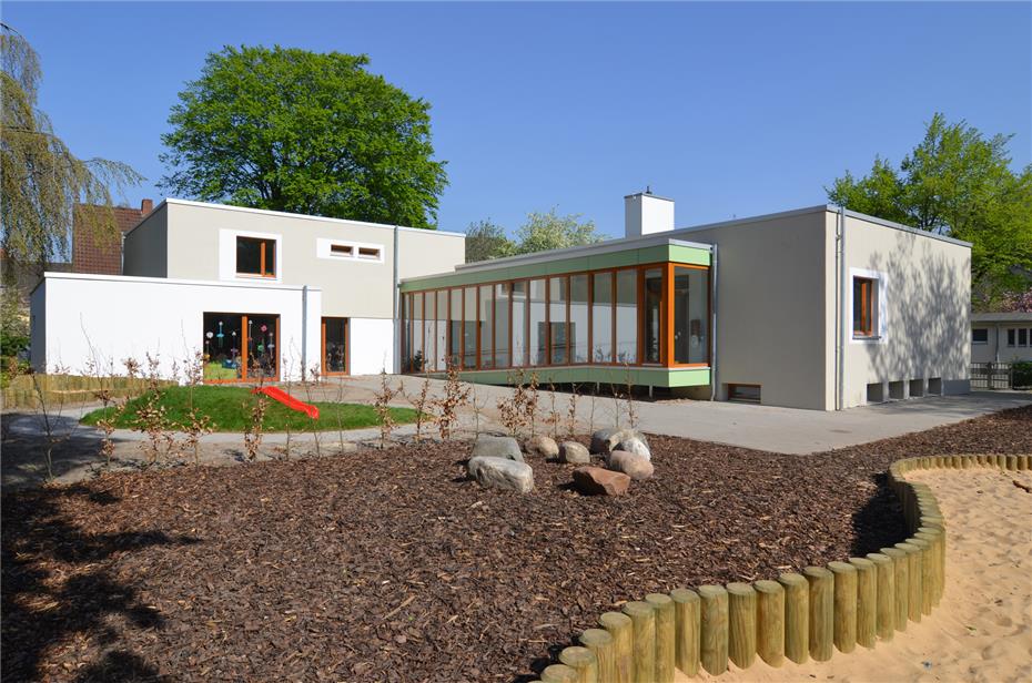Das vorhandene Kitagebäude wurde mit dem Pastorenhaus verbunden und zu einer U3 und Ü3-Einrichtung…